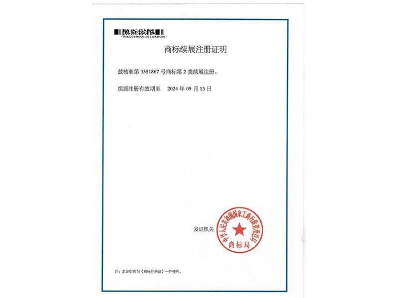商标续展注册证明